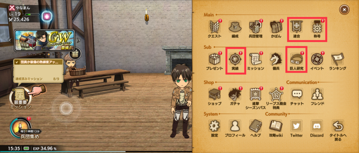 最重要ミッションは経験値も得られますし、報酬も豪華なので優先して進めていきましょう。強化もこちらを進めていけば素材が手に入るので、クリアへの一番の近道となります。